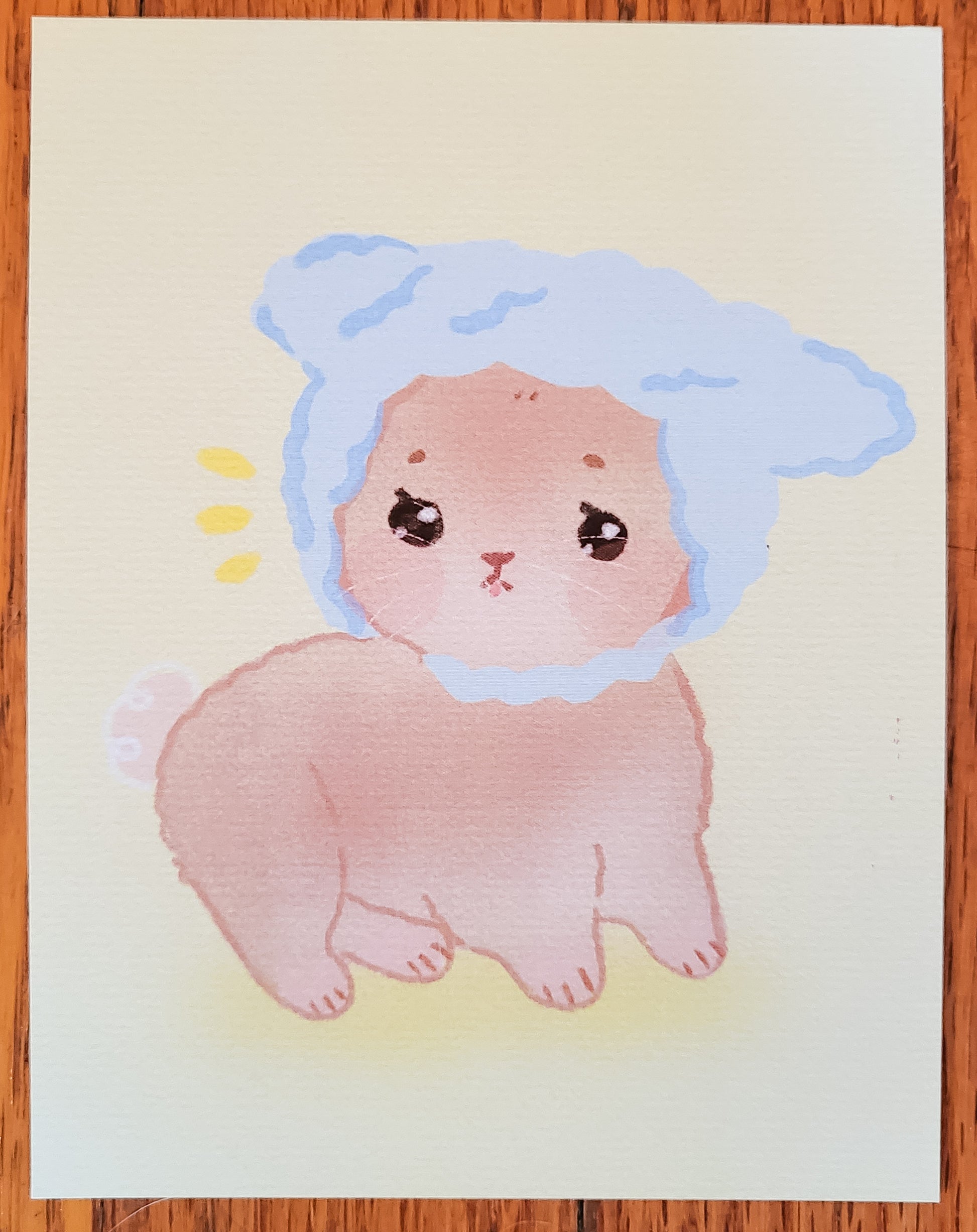 This adorable bunny print is on Heavy Cardstock and measures approximately 4" x 6" (in inches). Printed in full color, and perfect for decorating a desk or any small cute space!
