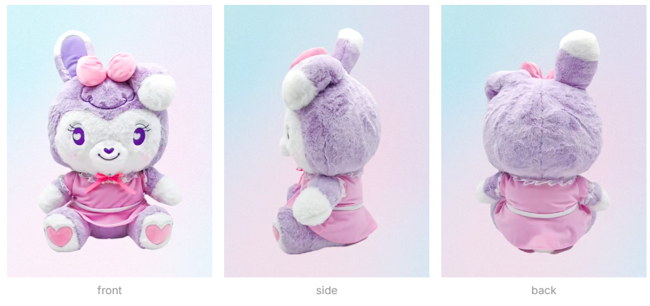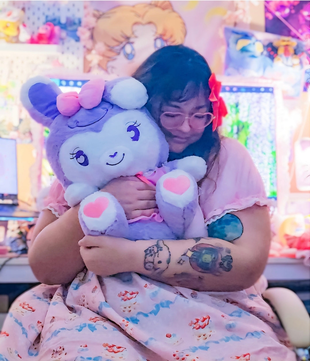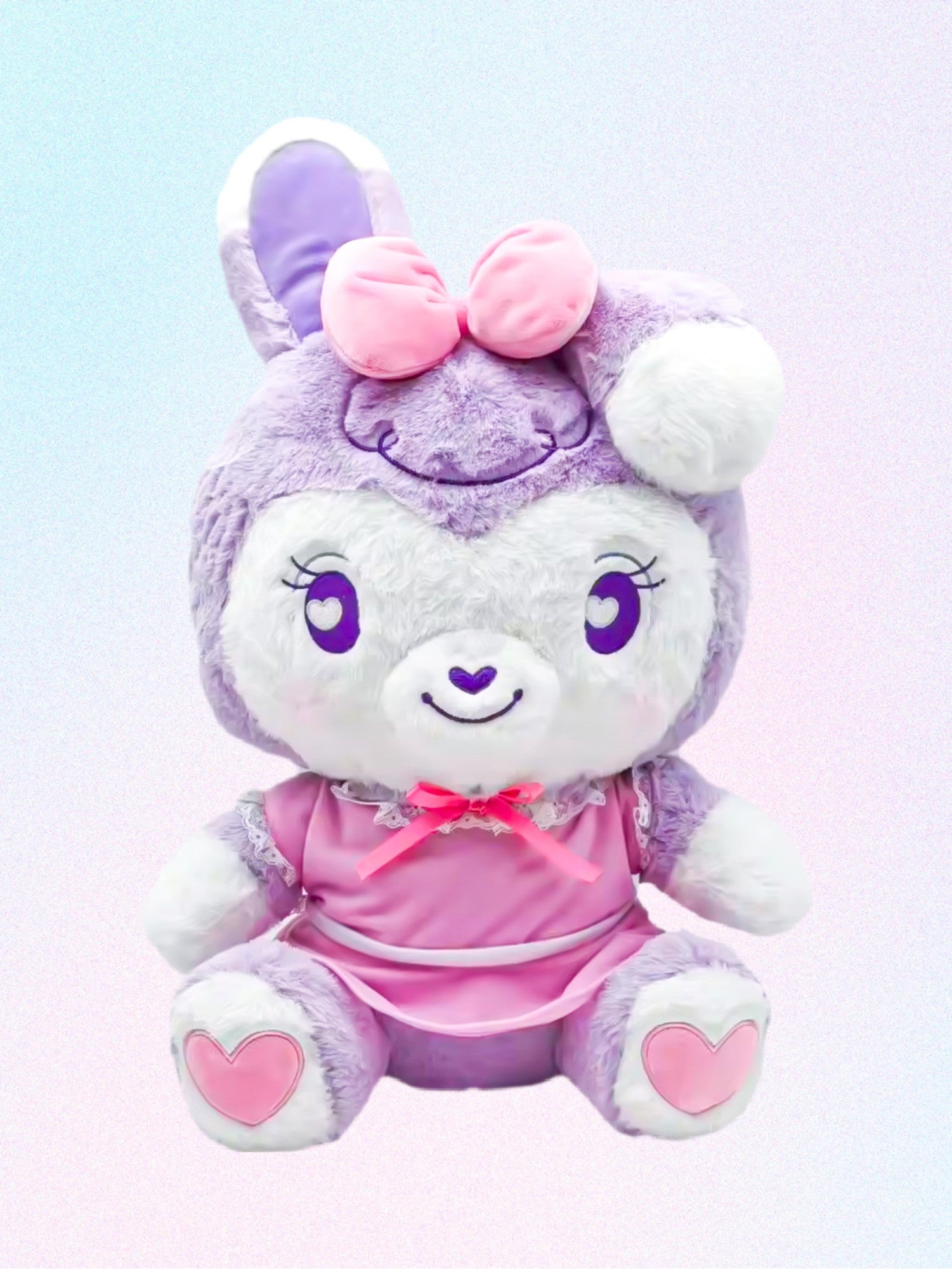 She's around 14" tall from her cotton tail to her head (NOT including her bunny ears, including her bunny ears she measures around 18"). She has embroidered features and super plush faux fur for perfect snuggling!