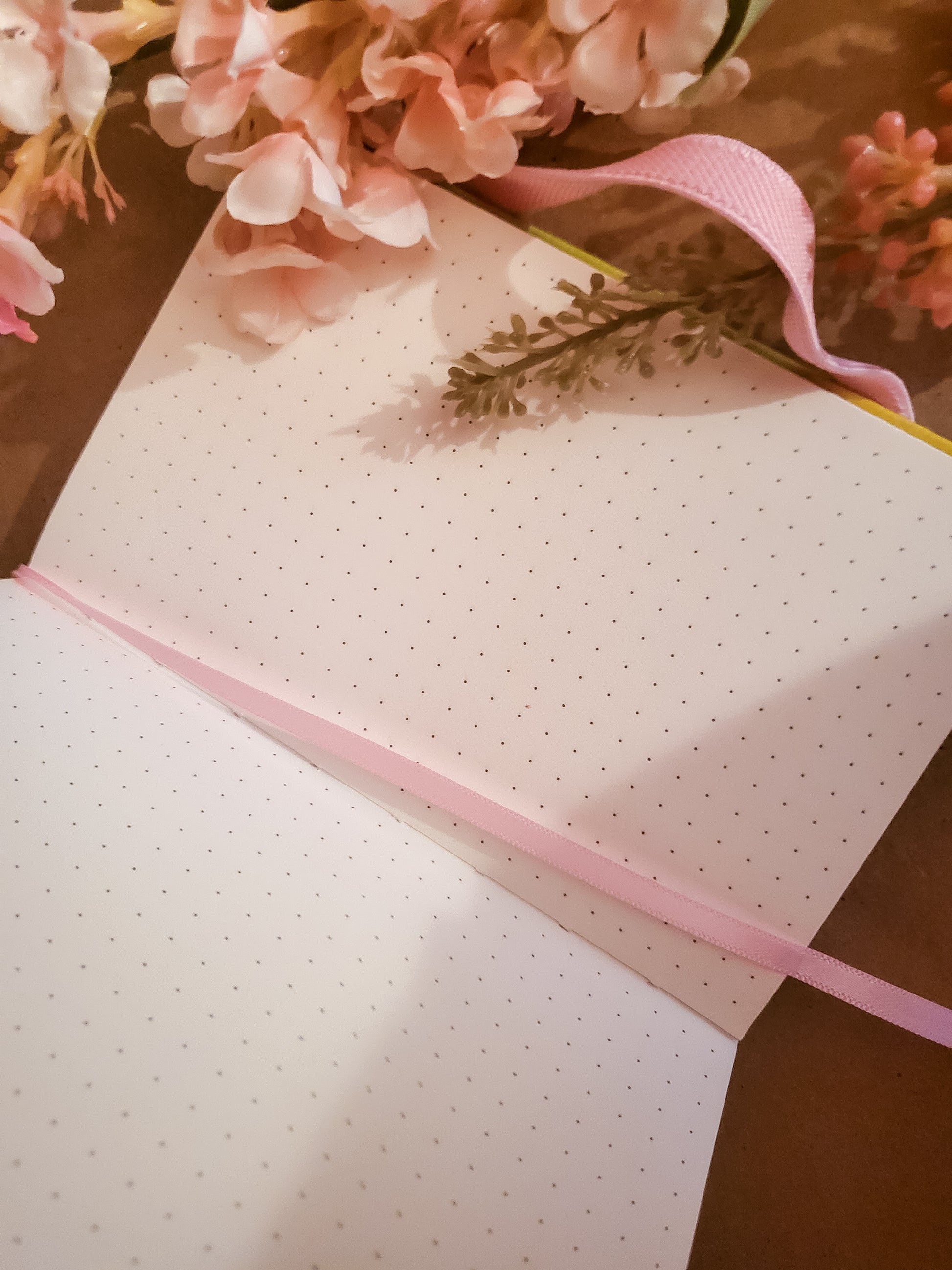 This leatherette notebook is done up in an A6 size, with dotted paper inside, and a pink strap to keep it safe and closed when not in use.